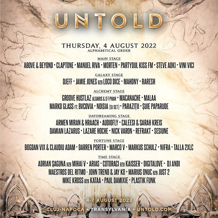 4-7 august 2022, Cluj-Napoca, Romania – acestea sunt principalele coordonate din timp si spatiu ale editiei din acest a festivalului Untold, ajuns la a saptea editie. Dupa ce a pus Clujul si Romania pe harta festivalurilor importante din toata lumea, Untold mentine la un nivel ridicat atat cantitatea dar si calitatea de artisti, de care publicul, devenit deja fidel, sa se bucure, la mijloc de vara, in poate cea mai bine pusa la punct locatie din Romania pentru astfel de evenimente.