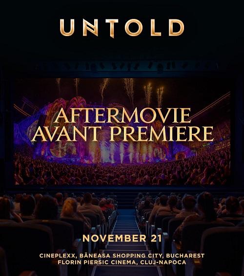 Aftermovie-ul UNTOLD 2022 va fi lansat în avanpremieră la cinema, în București și în Cluj-Napoca, pe 21 noiembrie. Astfel, fanii festivalului vor putea retrăi momentele și amintirile lor preferate de la ediția din acest an printr-o experiență cinematografică fantastică. Evenimentul de lansare din București va avea loc la Cineplexx în Băneasa Shopping City, iar în Cluj-Napoca la Cinema Florin Piersic, de la ora 20:00.