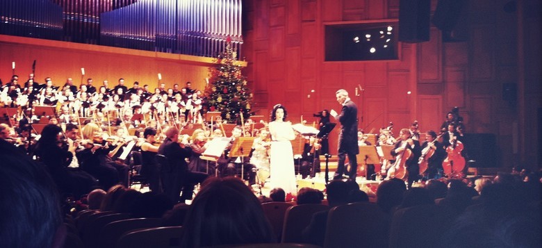 Celebra soprană Angela Gheorghiu a susţinut luni seară, la Sala Radio, un concert de Crăciun, „O, ce veste minunată!”, alături de Orchestra Naţională Radio, dirijată de Tiberiu Soare.