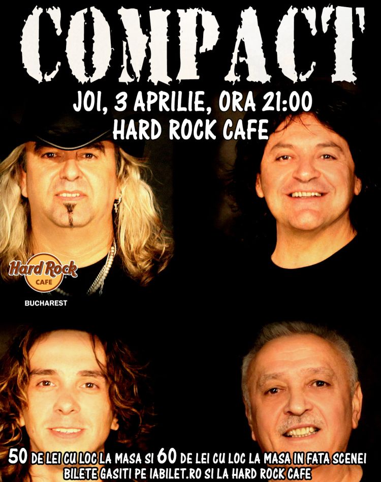 Joi, 3 aprilie 2014, începând cu ora 21.30, în Hard Rock Cafe are loc un nou concert pentru prieteni, susţinut de legendara trupă Compact! Tot atunci veţi putea asculta în premieră live noua piesă Compact, „Zâmbetul din ochii tăi”, piesă ce va fi inclusă pe noul album al trupei, material discografic ce va fi lansast în acest an.