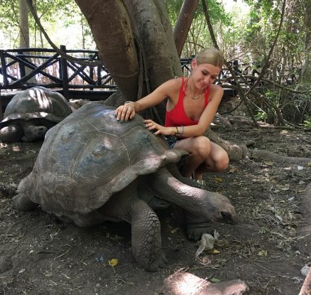 În cele zece zile petrecute departe de casă, Alina a vizitat locuri dintre cele mai frumoase, a practicat sporturile nautice și a vizitat rezervația de broaște țestoase din Prison Island. „Țestoasele sunt donate de insula Seychelles pentru insula Prison Island, iar cea mai bătrână dintre ele are 192 de ani”, spune Alina.