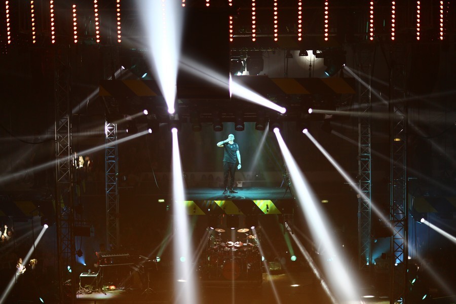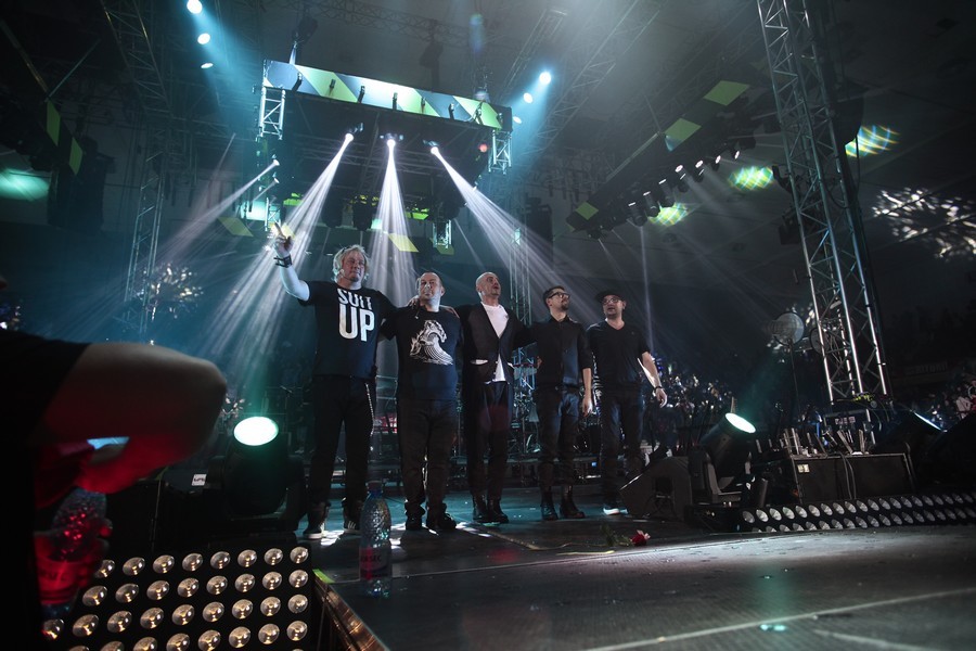 Meciul de box s-a încheiat cu cel mai recent single Voltaj, iar membrii trupei au avut o ieşire spectaculoasă din scenă, pe trei dintre cele cin platforme gigantice puse în mişcare de motoarele inteligente au dispărut prin plafonul Sălii Polivalente. Şi au apărut, la bis, prin lateralul scenei.