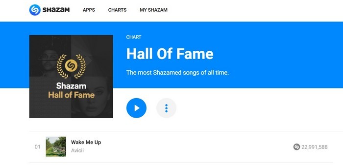 Cu peste 1.000.000.000 de vizualizări pe YouTube şi aproape 23 de milioane de căutări, conform platformei Shazam, piesa „Wake Me Up”, a suedezului Avicii, este cea mai căutată melodie, din toate timpurile.