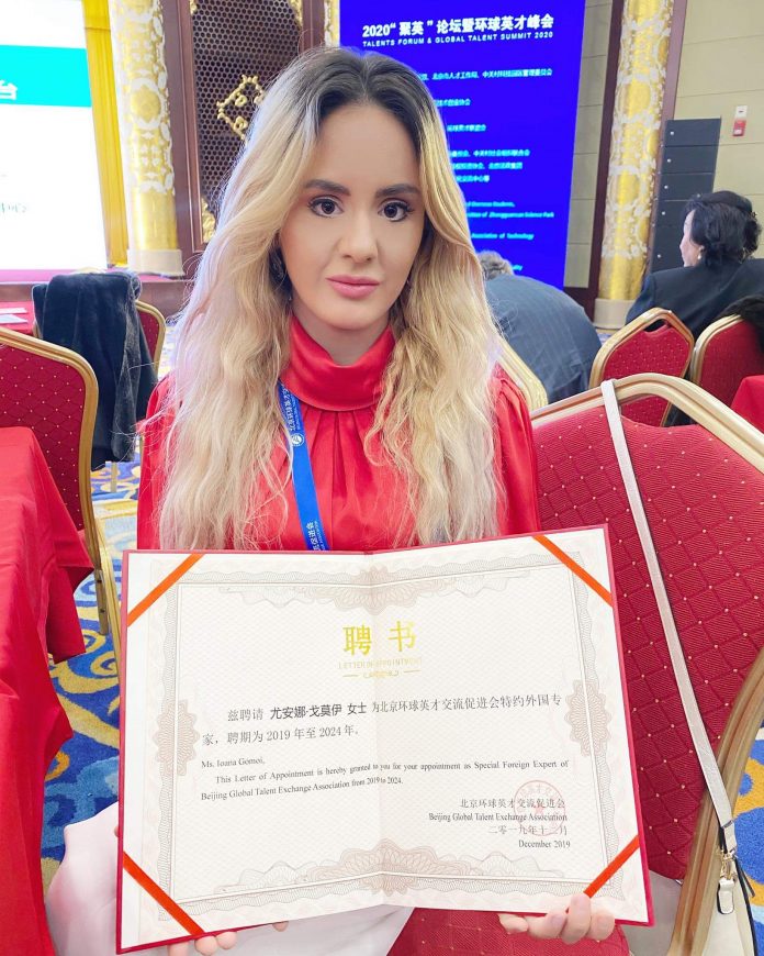 Surpriza acestui final de an este ca tanara a fost premiata pe 22 decembrie la un eveniment care s-a numit „Forumul Global al Talentelor” pentru meritele sale din tara respectiva. „Nu-mi vine sa cred ca am primit un premiu special de la Guvernul Chinei pentru ceea ce am realizat aici. Sunt primul roman care ia premiul acesta si sunt foarte extaziata. Este un premiu pe care il primesc tot felul de somitati si am ramas surprinsa cand am primit si eu nominalizarea. Pot sa spun ca este un cadou superb de Craciun de la Mos Craciun. A fost o veste extraordinara si duminica am fost sa-l iau. Ma bucur ca i-am impresionat pe chinezi si pe cei care m-au nominalizat. Am avut un soc pentru ca eu sunt doar de doi ani aici si nu mi-a venit sa cred”, ne-a povestit Ioana prin intermediul unei conversatii pe facebook. Tot acolo a publicat imagini de la evenimentul respectiv unde a fost premiata!