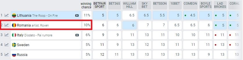 Cu doar cateva ore inainte de finala selecției naționale pentru Eurovision 2020, Romania este cotata cu a doua sansa de a castiga, conform cotelor de pariuri internaționale de pe site-ul oficial al concursului. Astfel, urmand trendul ascendent din ultimele zile, Roxen este creditata cu o sansa de castig de 10%, cu doar un procent mai putin fata de The „Roop”, reprezentantii Lituaniei.