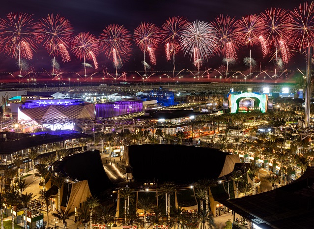 DUBAI, 07 January 2022. Fireworks display during the Kingdom of Saudi Arabia National Day celebrations, Expo 2020 Dubai. (Photo by Christopher Pike/Expo 2020 Dubai)