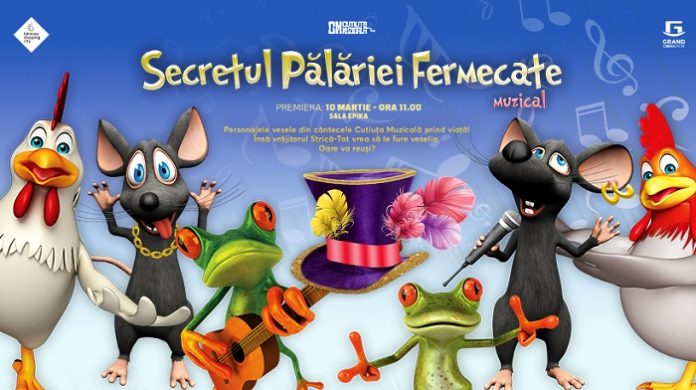 Scenariul musicalului pentru copii „Secretul Pălăriei Fermecate” include 8 personaje efervescente, printre care Graţiela – o morăriţă graţioasă, Tomi – un băieţel inocent şi curios, Cocuţa – o găinuşă cochetă, sau Rufus – un cocoş impunător care se află sub protecţia marelui magician Albertino. Copiii vor fi şi ei eroi ai poveştii: vor cânta, vor dansa şi vor salva veselia alături de personajele preferate.