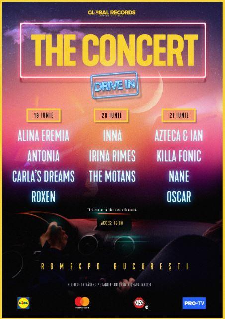 Pe 19, 20 și 21 iunie, în parcarea principală de la Romexpo, artiștii tăi preferați urcă pe scenă pentru cel mai mare concert drive-in din România, THE CONCERT drive-in! În contextul actual, pentru respectarea măsurilor de distanțare socială, fanii vor putea urmări artiștii și concertele care le-au lipsit în toată această perioadă, live, într-un mod inedit, din mașină.
